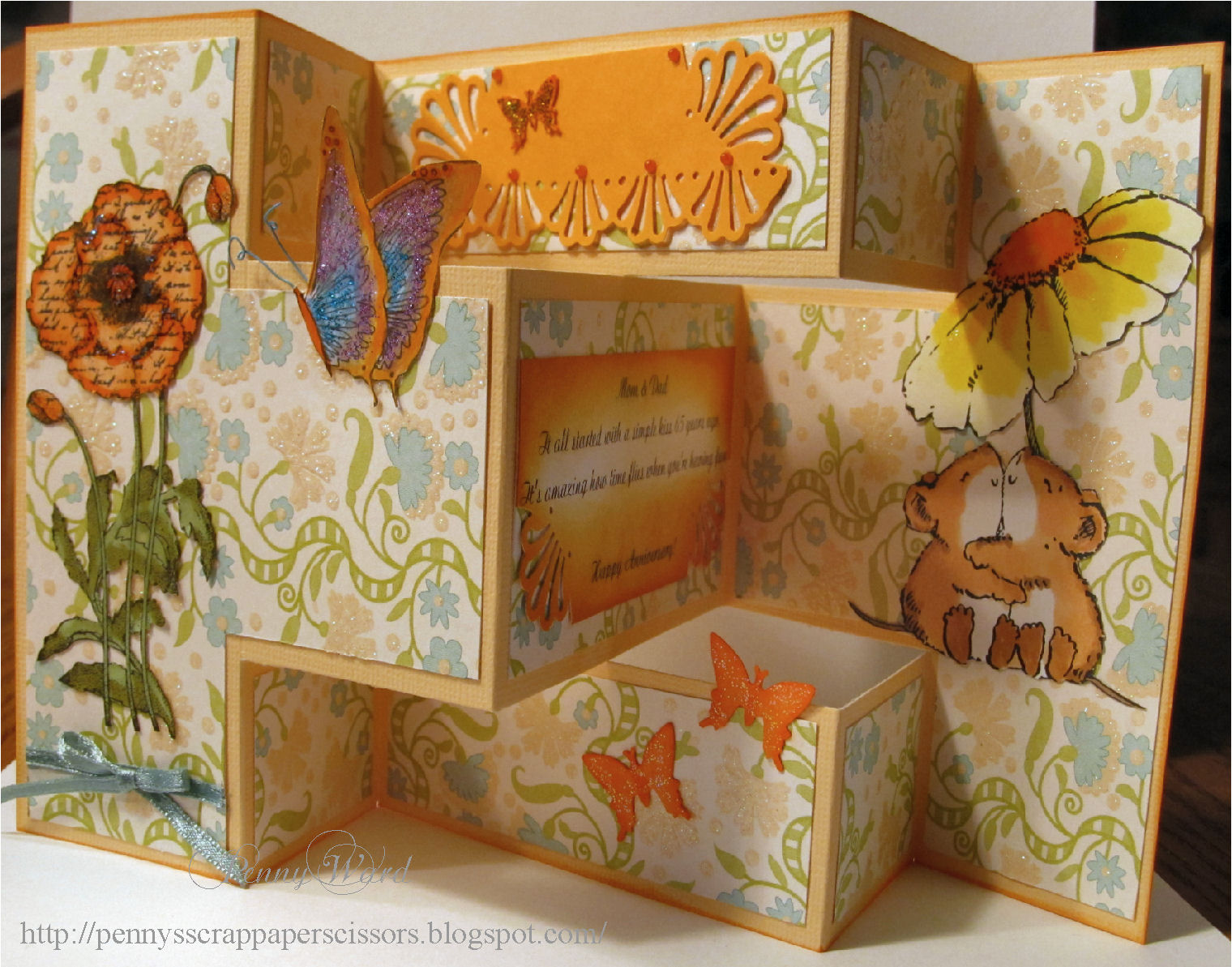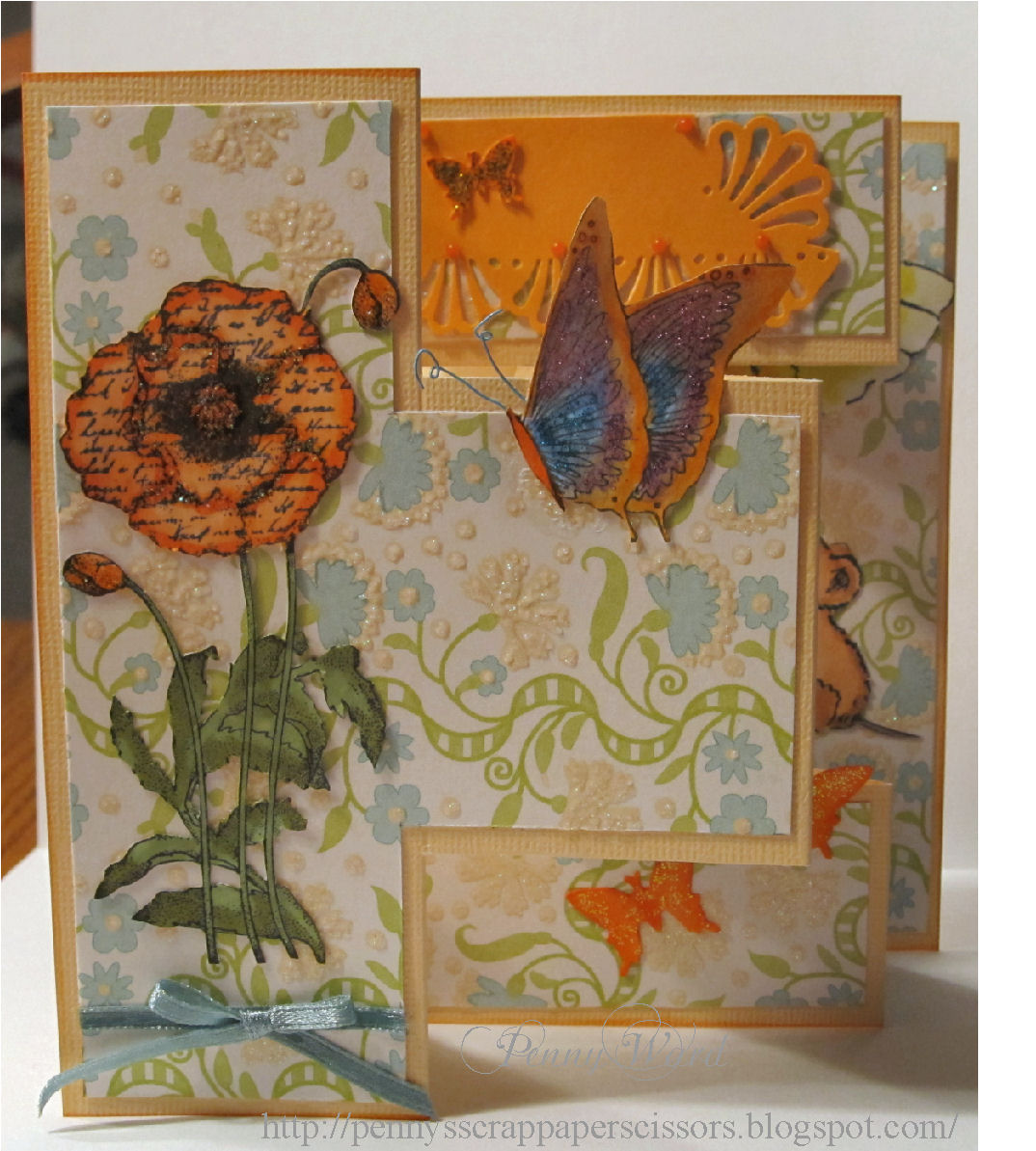 Wow! such a beautiful fold, Penny! Love the pp and all the mix of stamps you used! Good luck!
