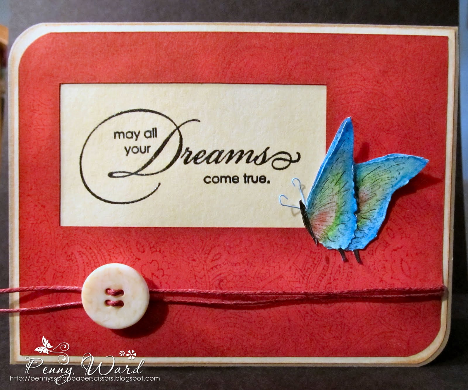 Penny thank you for saying that my card was the inspiration for YOUR gorgeous design. I love the vibrant blue butterfly against the red background. Your stamping is always beautiful!