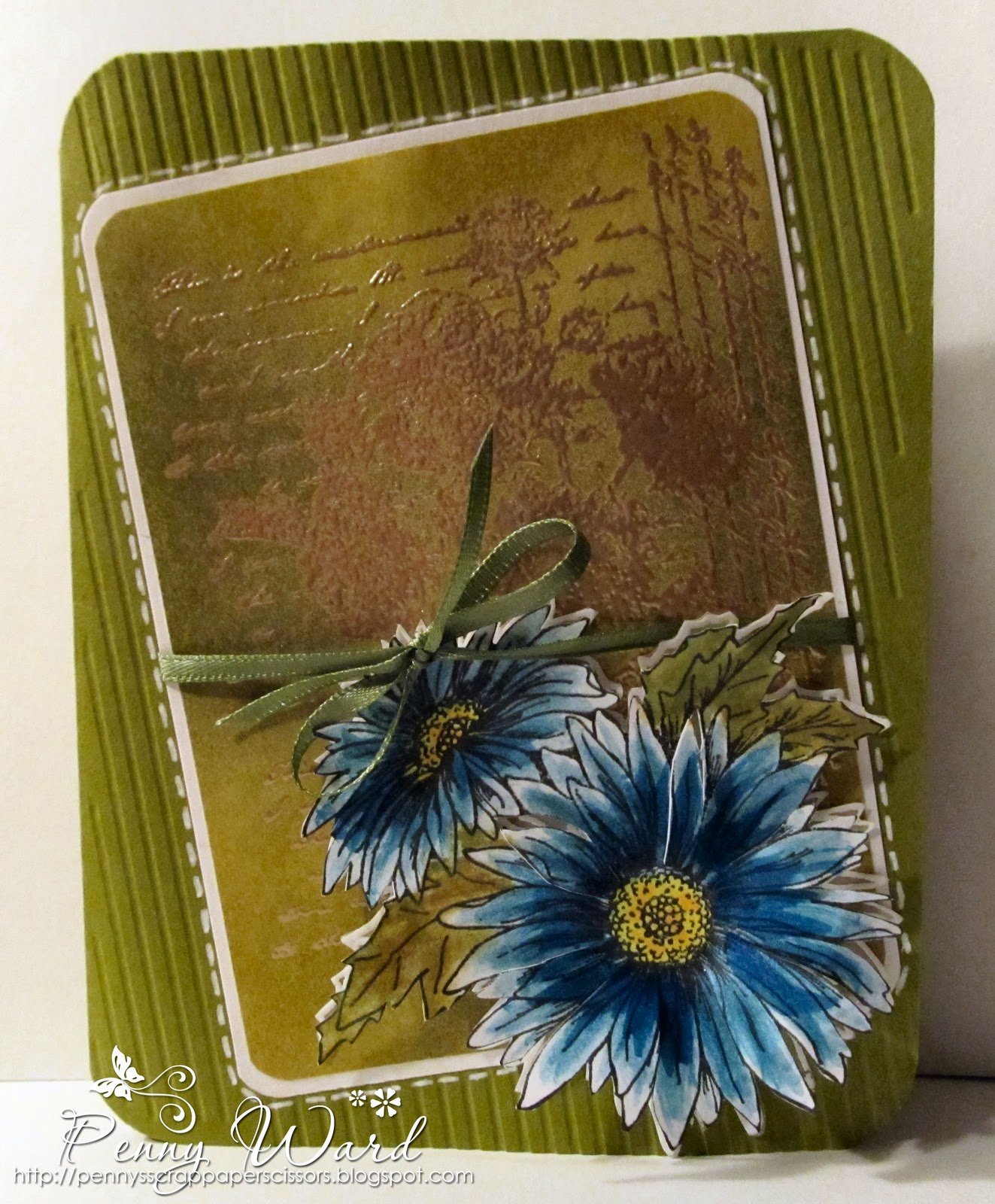 Penny the color combination is beautiful. I like the textures you have incorporate (heat embossing and dry embossing) which really emphasize the visual focus on those gorgeous flowers.