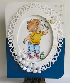 Going to the cottage this weekend to play bubbles with my grandson. How cute is this digi stamp by Mo Manning????? Just perfect for my little cupcake.