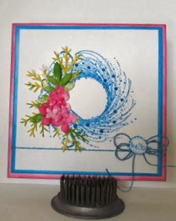 All card stock started out white. Stamped and clear embossed the wreath. Added flowers for a summer look.