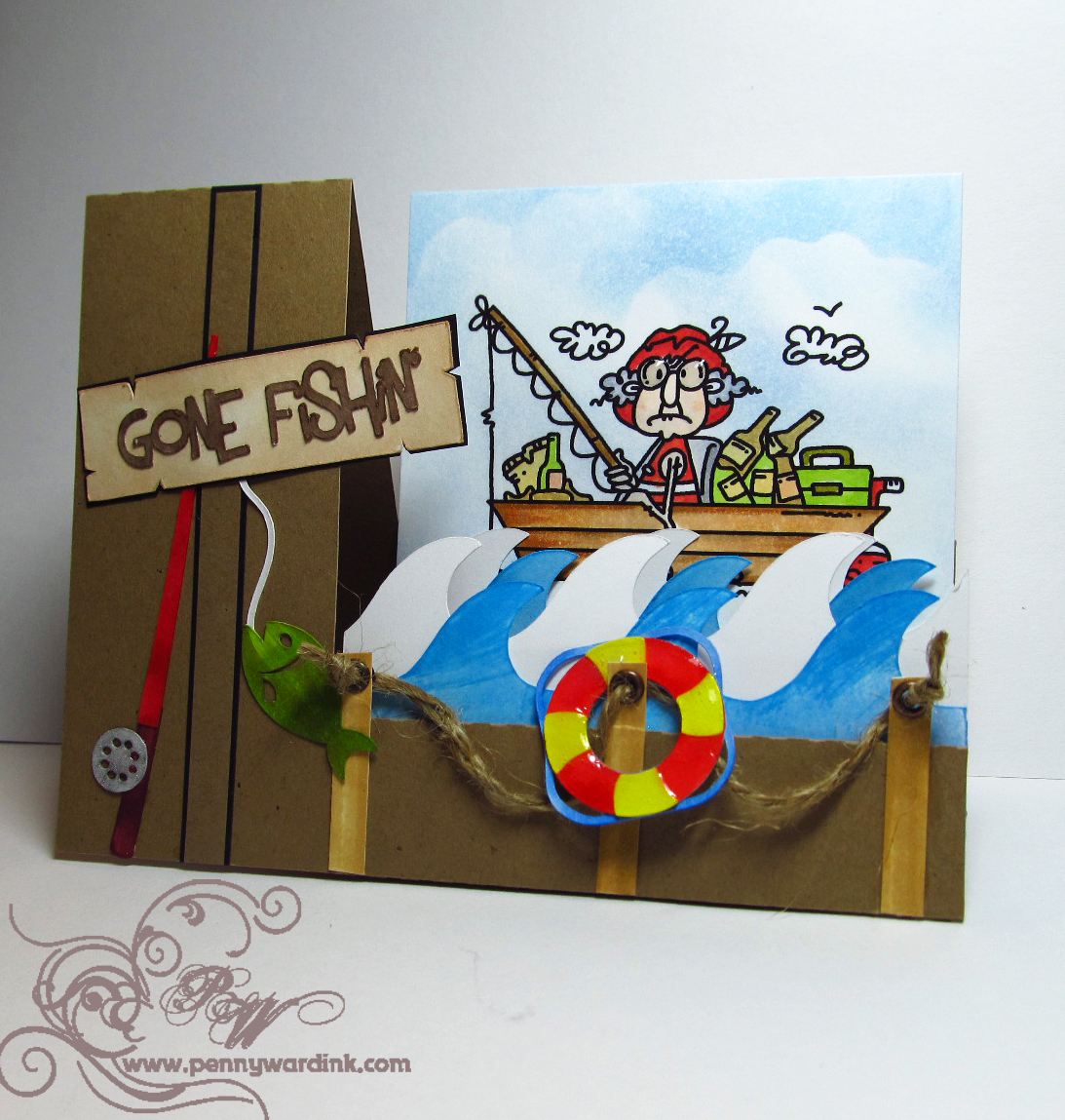 My dad wanted me to make a card for his fishing buddy, so when I was looking for a digi stamp I found a card made by Cely over at Creating in Carolina. I pretty much CASED the card, therefore I am not entering it into any challenges. I just wanted to show you all what took 3 hours to make. YIKES!!!