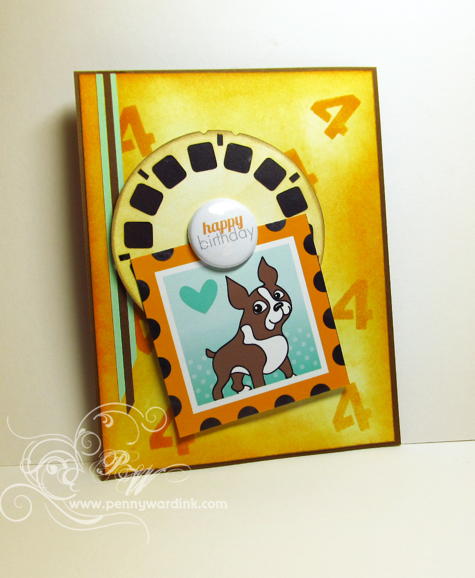 The Viewmaster Reel is cut with Silhouette Cameo and the picture of Simon is from a post card included with my last order from them. The super cute button is from Bossy Joscie Crafty Flair.