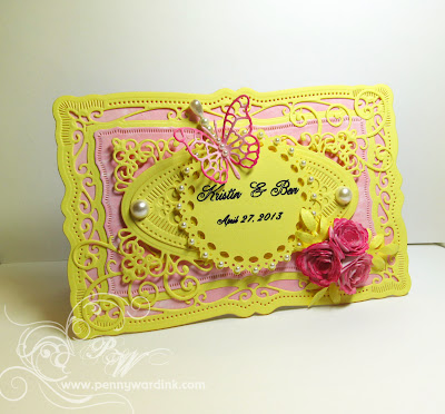Hey friends.... I have a wedding card for you today. Her colors are Yellow and Blush so I went with that and ended up with a really frilly card.