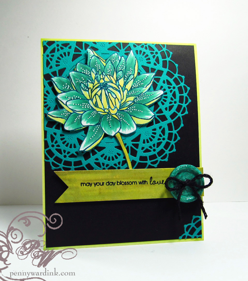 Today I made a card just for fun and I absolutely love this color combo of Teal, Black & Lime Green.