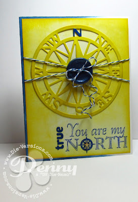 White card stock was inked all over with Memento Dandelion as well as the die itself. Sentiment is hand made with Silhouette Studio. The word "true" is a font die called Mucho Micro (adorable micro font perfect for card making), & added a tiny veneer star to the navigation "o".