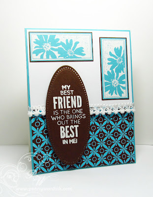 Flowers were stamped and heat embossed with white onto Aqua Blue card stock and matted with Chocolate Brown.