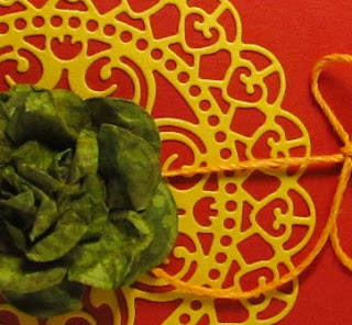 The flower is actually a flower stamp by Penny Black from the Tree-mendous clear set, stamped & fussy cut three times, scrunched and adhered to card with a brad.