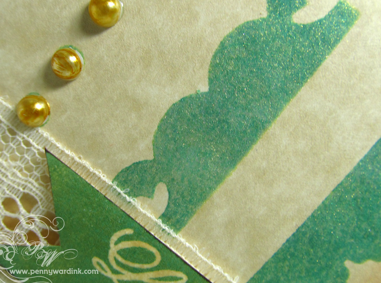 Using the sketch I made a mask with my Silhouette incorporating lace outlines for my columns. Pear Tart Fireworks were also sprayed on the mask to give it a little sheen.