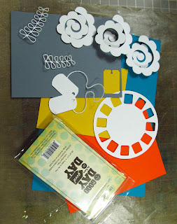 Take a picture of your stash laying around and make something with it. These scraps were at the top of the pile so that is what I used, I found a stamp that I am pretty sure has never been inked (what's up with that?), and a few cuts I had made with the Silhouette sitting in a plastic box.