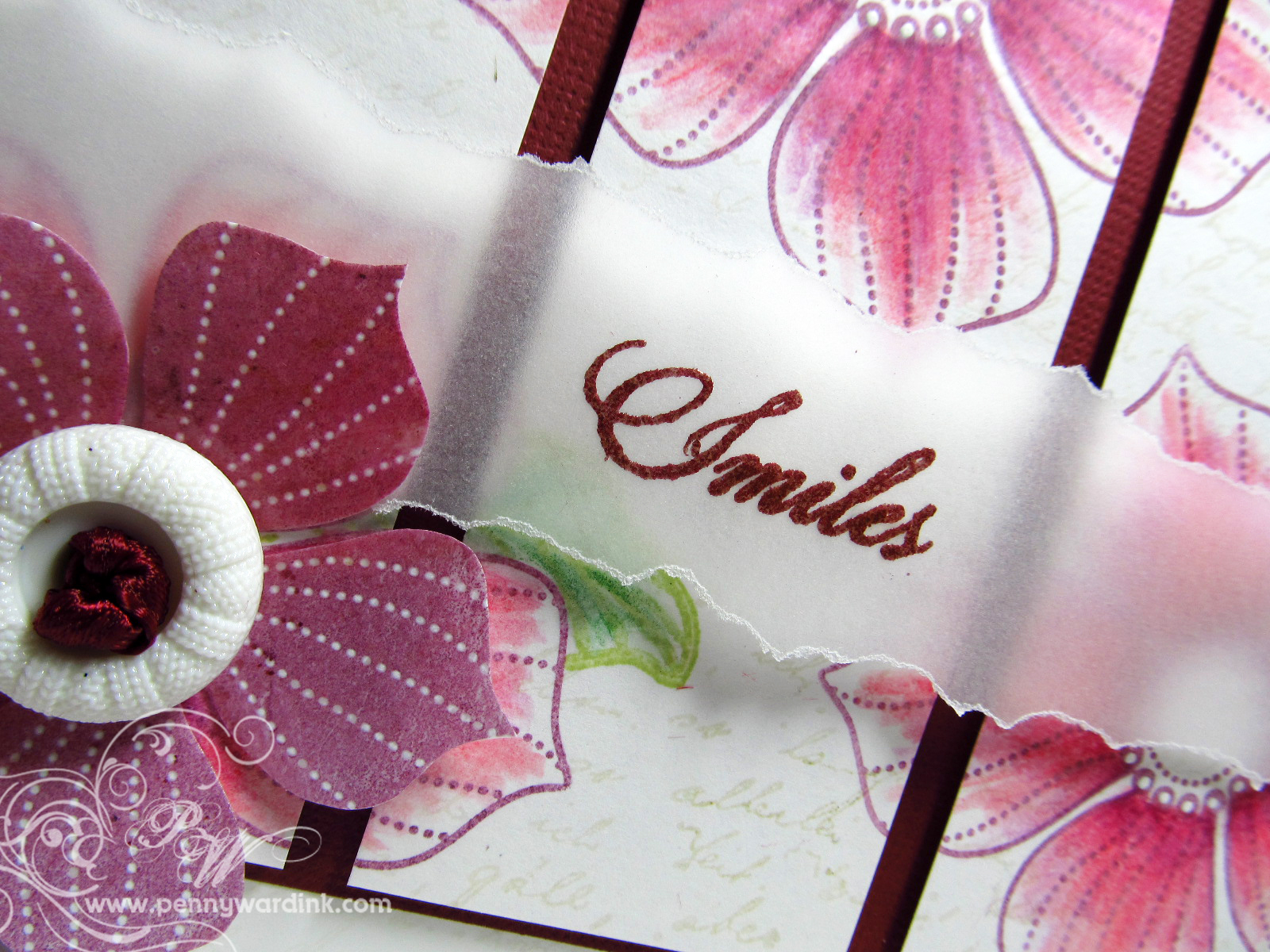 I basically took her design , flowers and vellum and ran with that. The stamps are changed, as are the colors.