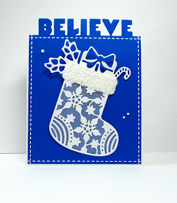 I cut the Stocking in white and a piece of vellum for the backside. I also added Flower Soft to the top of the Stocking, and of course my beloved Liquid Pearls.