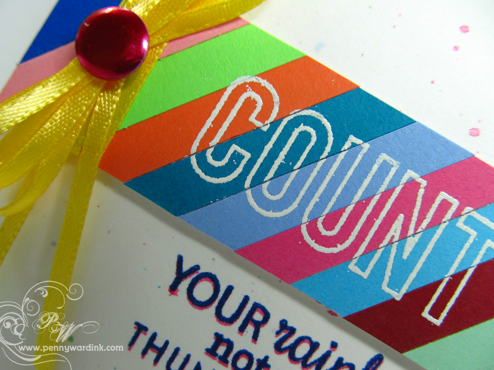 On my card, I cut the large arrow with my Silhouette, then adhered strips of colored card stock to it. I love doing this technique as it uses up all those little scraps of paper we all save.