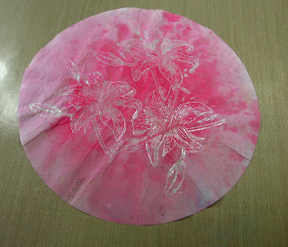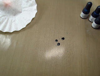 Put a couple of drops of ink on your craft sheet, spritz with water, then lay coffee filter over ink.