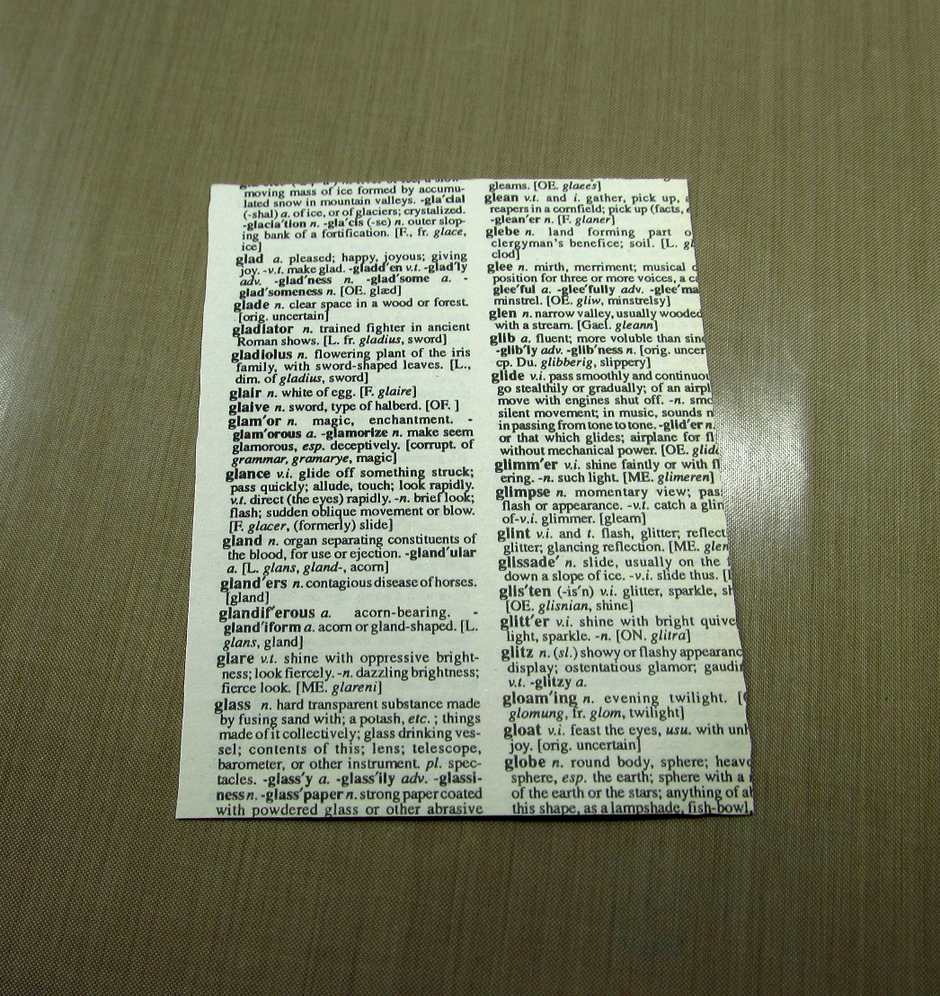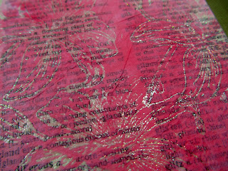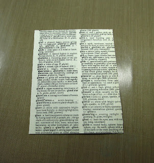 Below, I have made a second card with a little variation in that I glued a dictionary page to the card stock, then attached the coffee filter on top...now the printing shows through: