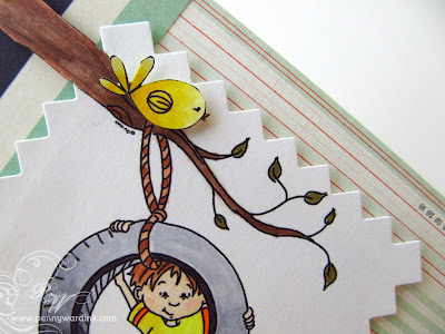 What an adorable card. I just love how the tree branch hangs off the edge. Great coloring too!