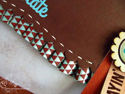 I don't know how you did it, Penny, but that brown paper looks EXACTLY like chocolate! Is it suede paper? The aqua letters are delicious, too, and that beautiful ruffled ribbon is fabulous!! Darnell