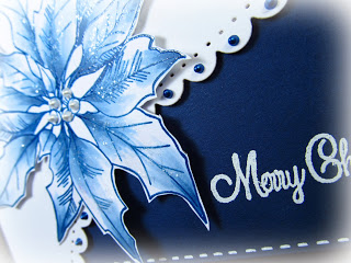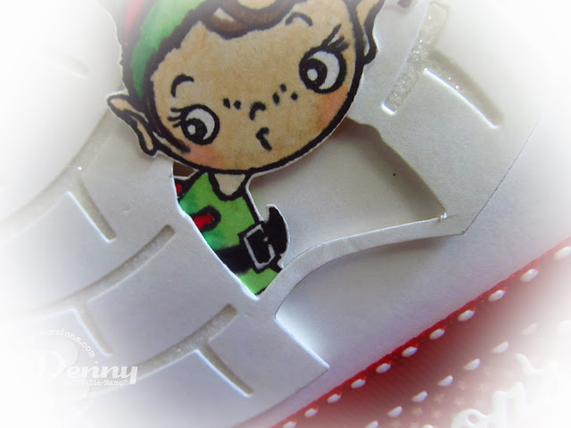 Colored the little cuties with Copic markers, die cut a round opening from the main card front and slid them behind using foam adhesive to give the card front dimension. Added Polar White Flowersoft to the stocking.