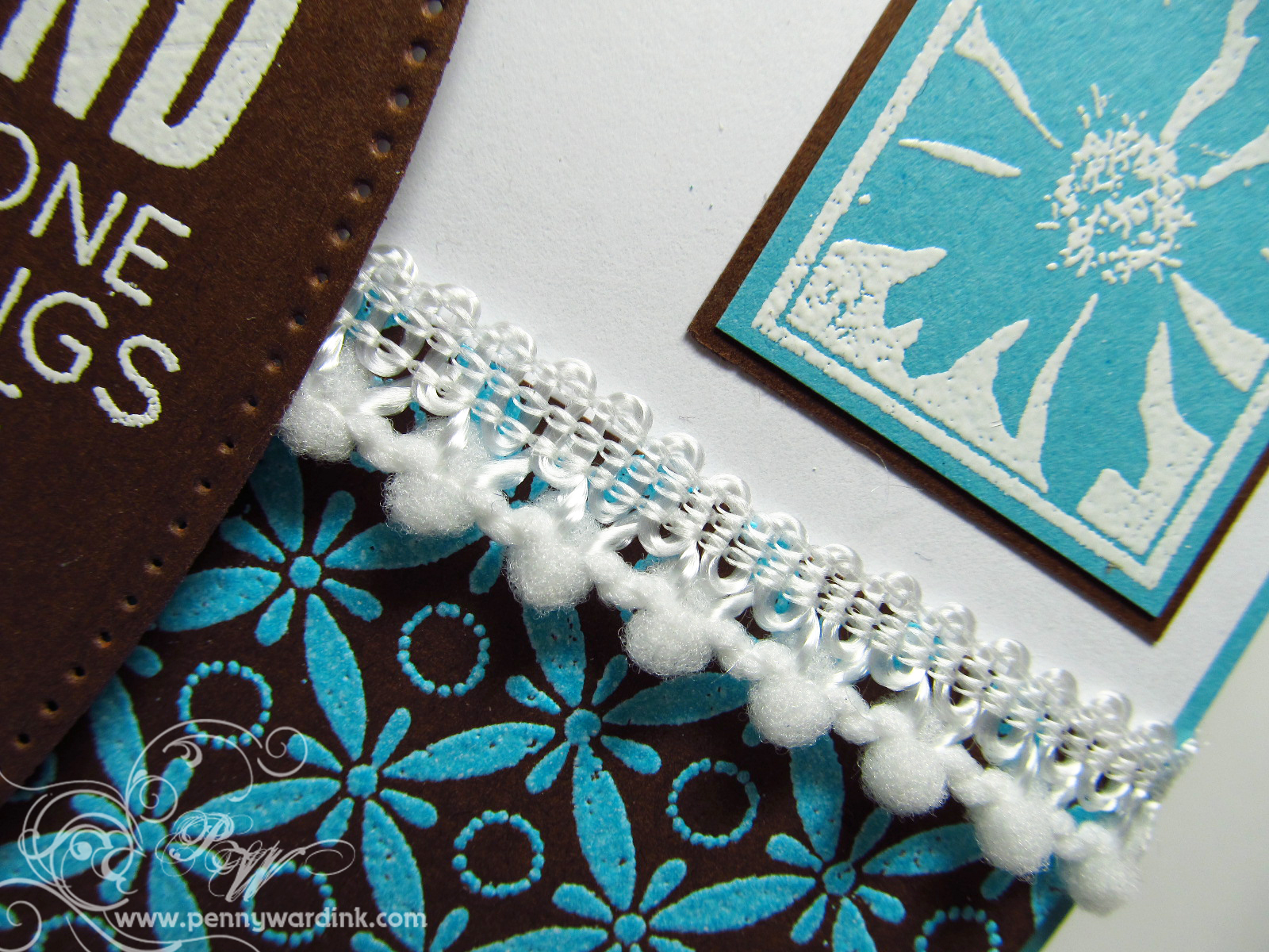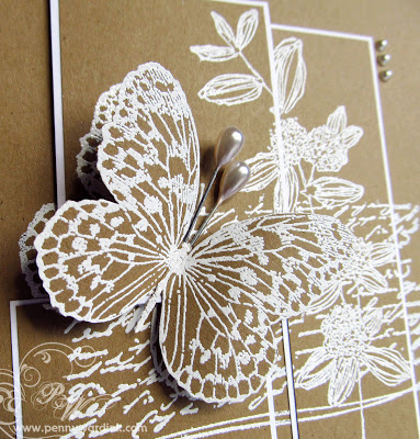I am really kind of liking this sentiment that I stamped and heat embossed on the tag after inking it with distress inks. I also inked and fussy cut the clock and the butterfly. The “Thanks” sentiment was stamped, then die cut and adhered to tag over the lace.