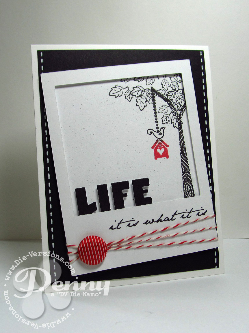 Adhere a small section of this strip to back of card so about 2 1/2 inches fold to the front of the card. Attach a butterfly, flower, button etc. so the strip can be tucked just enough to keep the card closed. Attach all of this to a piece of card stock that measures the standard 4 1/4 x 5 1/2 inch size.