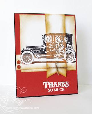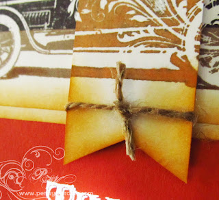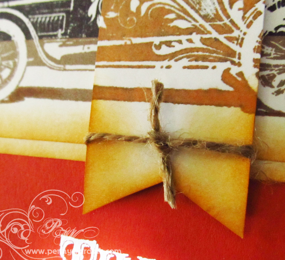 I love how this tag turned out. The background was stamped with the receipt stamp, then I masked off all but a small sentiment on the larger stamp in the Vintage Treasures set.