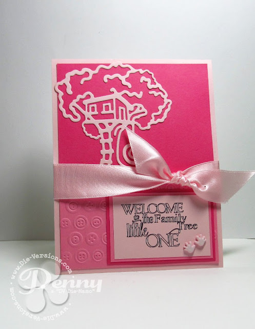 Hi friends....no little girls at my house as I have two sons and two grandsons, but I have to tell you I had a blast making this baby girl card with the new Tree Dream die from Die-Versions.