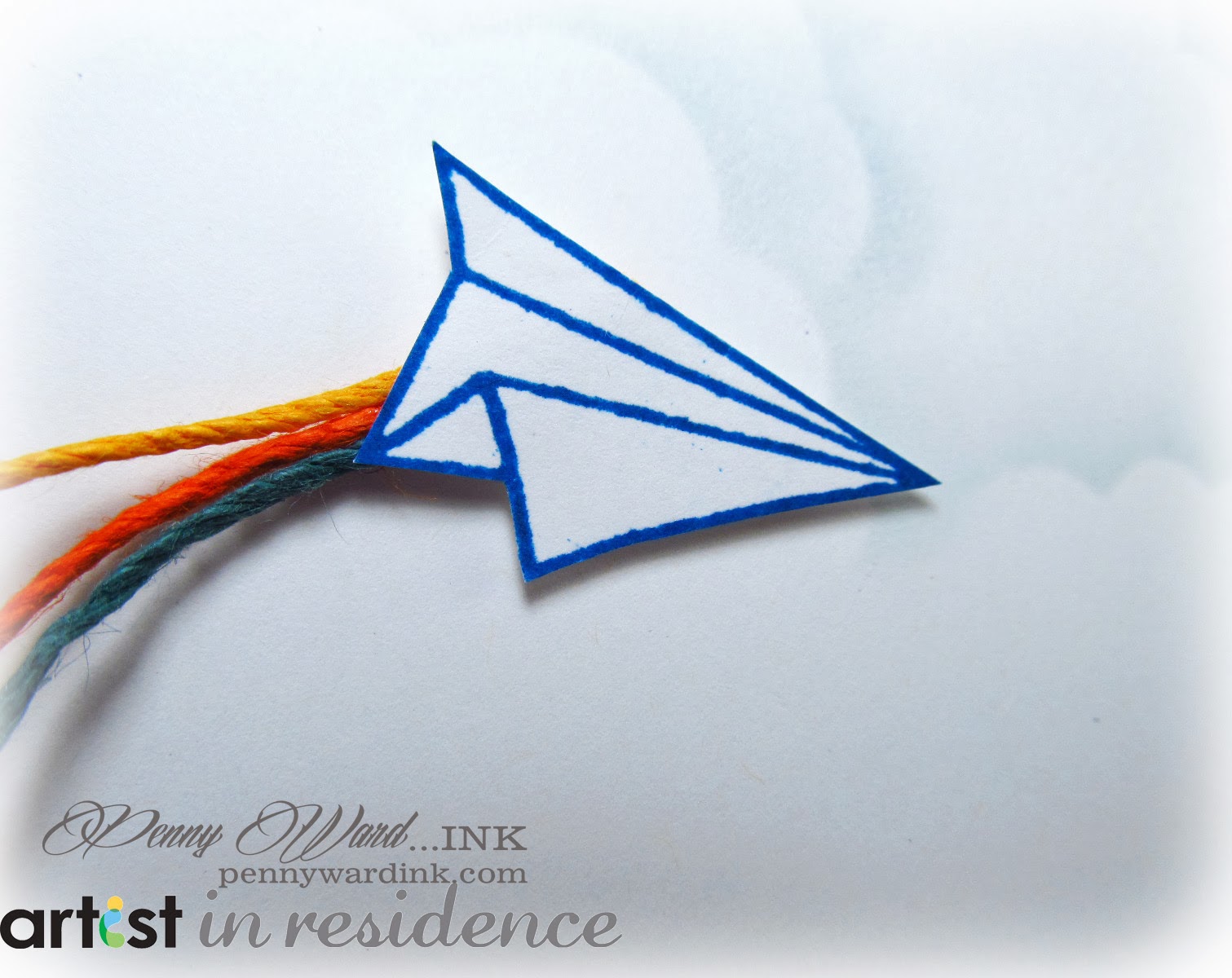 * Stamp and fussy cut paper airplane. Attach twine to back and adhere with foam adhesive.