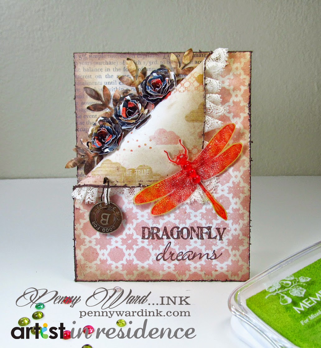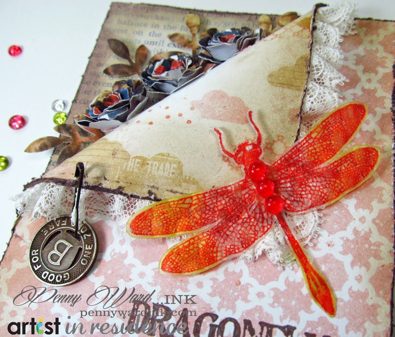 I have thoroughly enjoyed looking at your cards Penny! Cutting out the flourish edge is a great design trick! I really love the dragonfly card with the pocket of flowers tucked in. It's really tough to decide which one I like more as they are both stunning.
