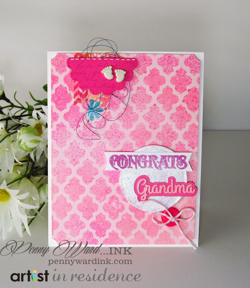 AWESOME work on pulling these elements together! FABULOUS use of stencil and dies, Penny! So glad that you join the fun over Virginia's View challenge! GREAT job on CASing Shari and celebrating on her becoming a new Grandmother!