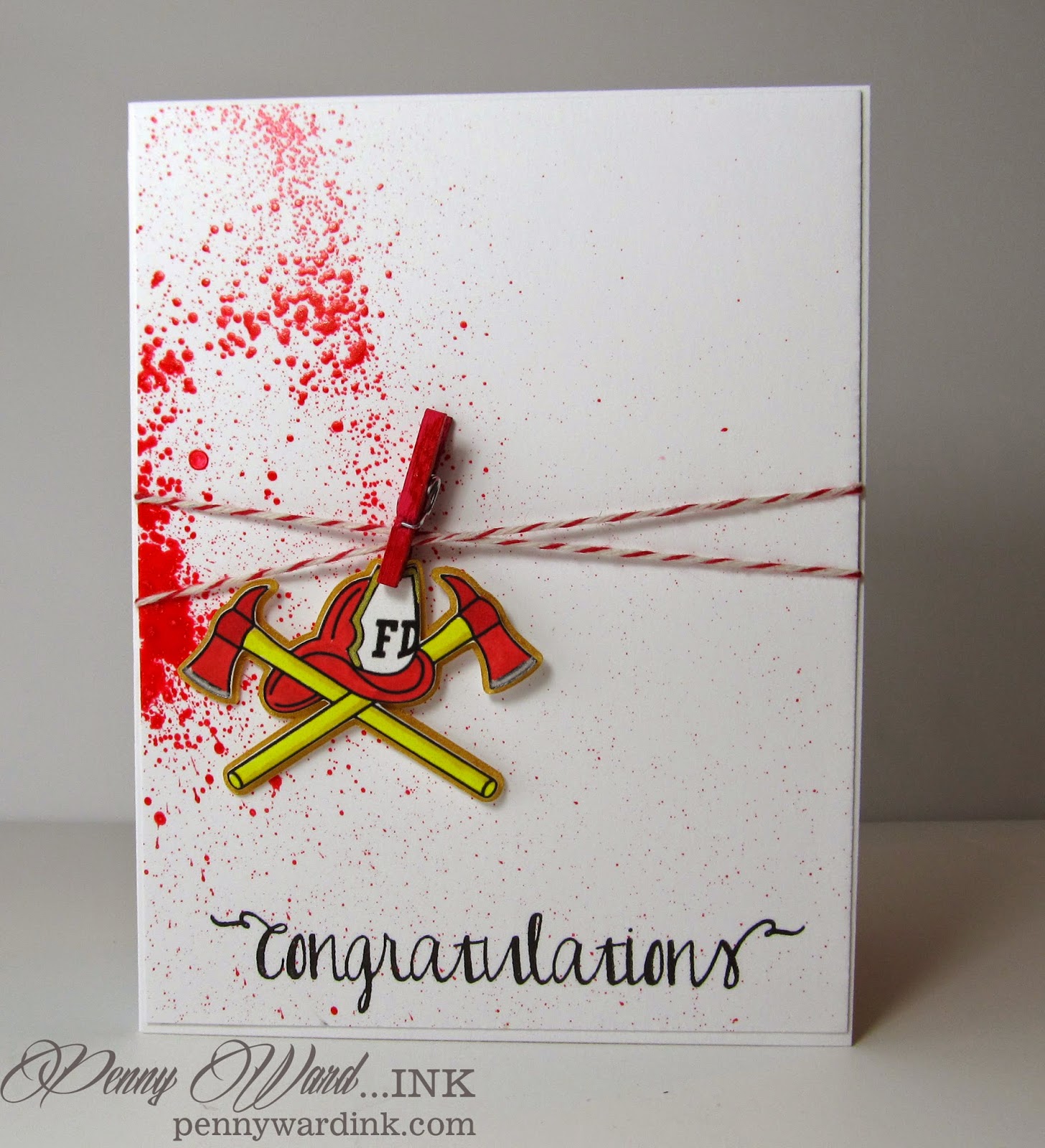 Love them! Great coloring and a sucker for the splatter look too! My hubby is a FF/PM and my nephew & BIL are both Police Officers so I love seeing cards like this!