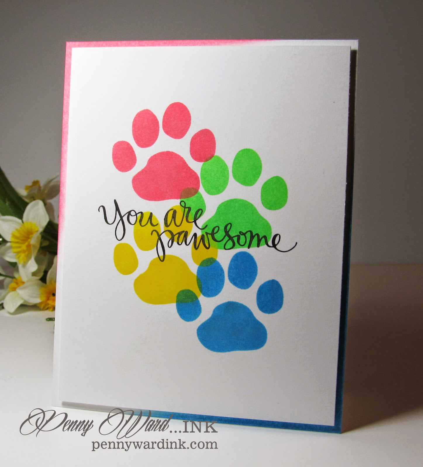 Awe I love this card! Such a great combo ~ puppy paws and neon! Two of my favorite things! (Have you ever compared the Hero Arts Neon inks to the Radiant Neon ones? If so which did you like better and why? I don't own any neons yet so I've wondered which is better.) Thanks so much :)