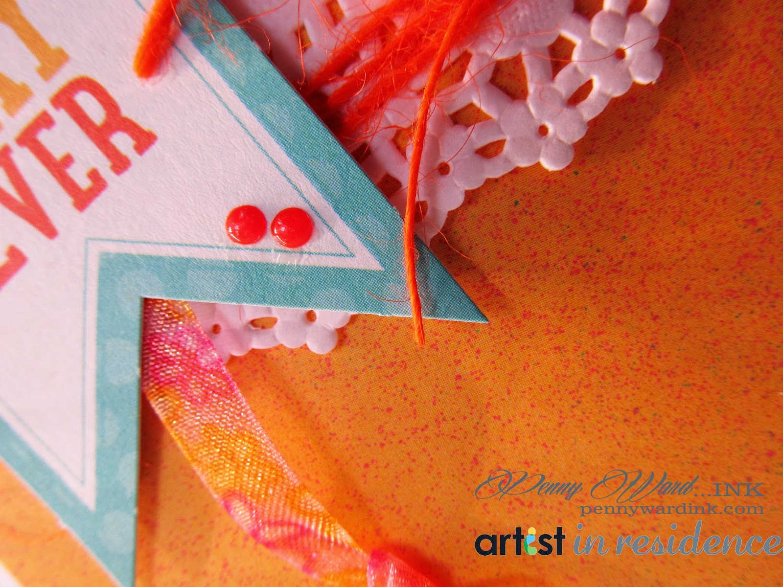 Fireworks Bahama Blue & irRESISTible Tangelo used for "dots" embellishments.