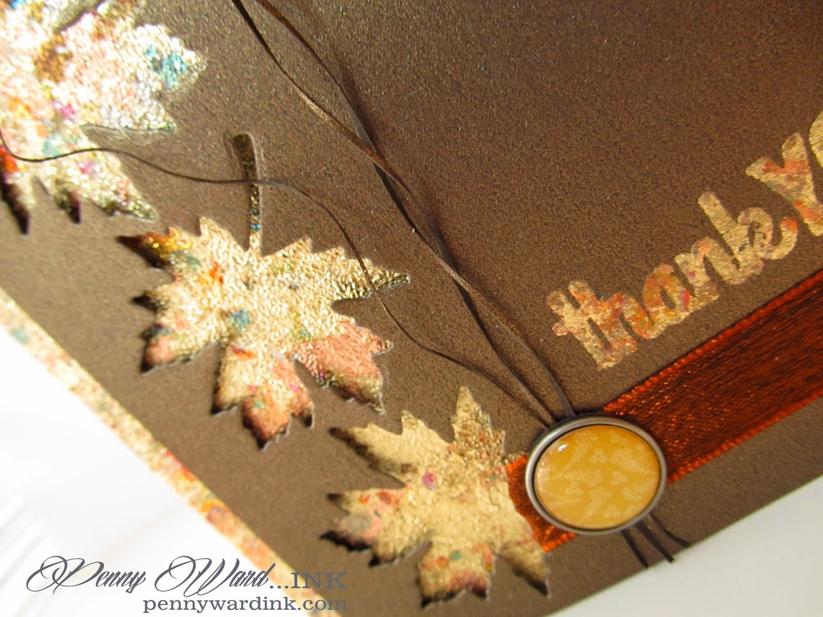 Airbrushed the main card front in gray, then stamped and heat embossed the leaves.