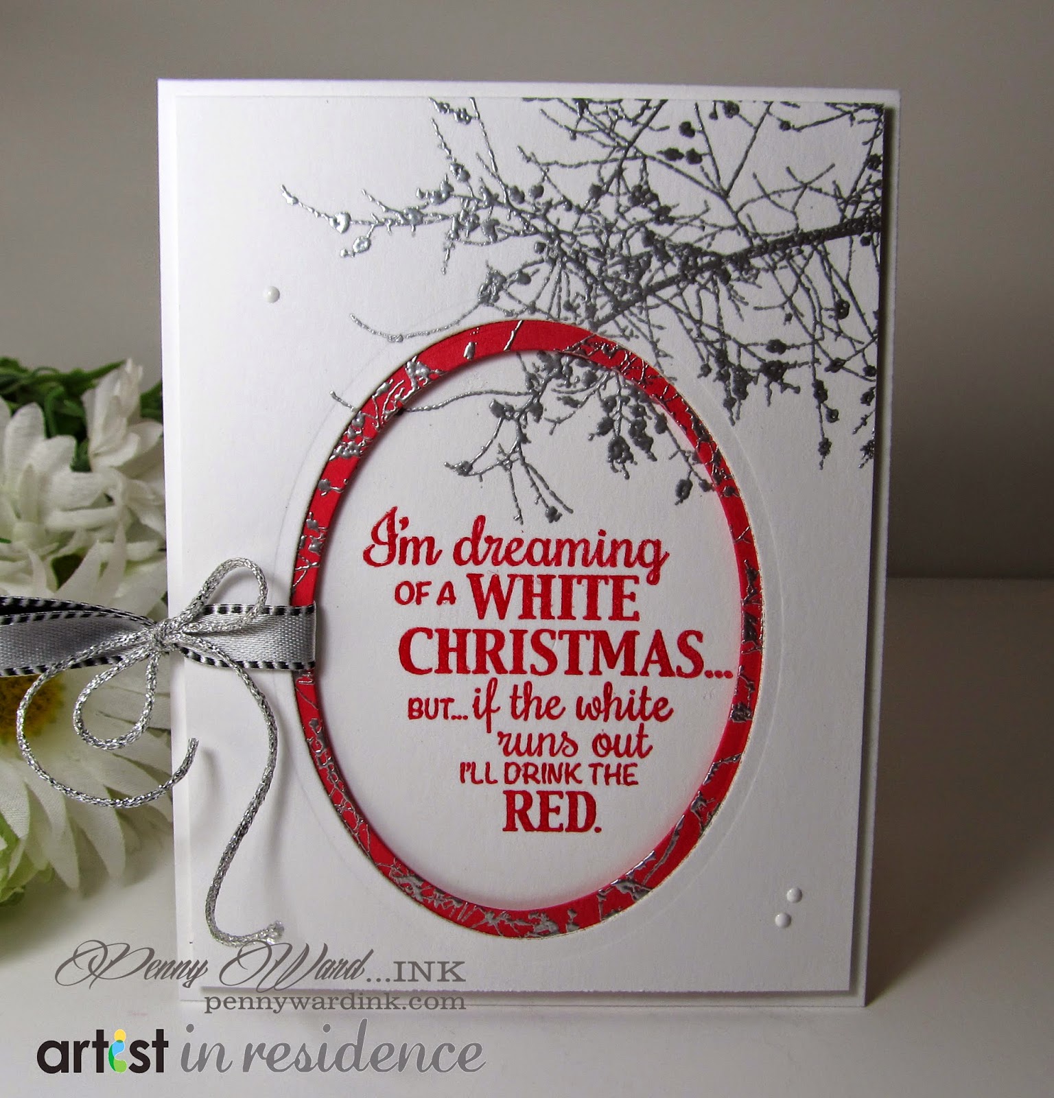 Imagine Crafts/Tsukineko:  Memento Luxe Love Letter ink, Clear and Silver embossing powder, irRESISTible Pico in Wedding White