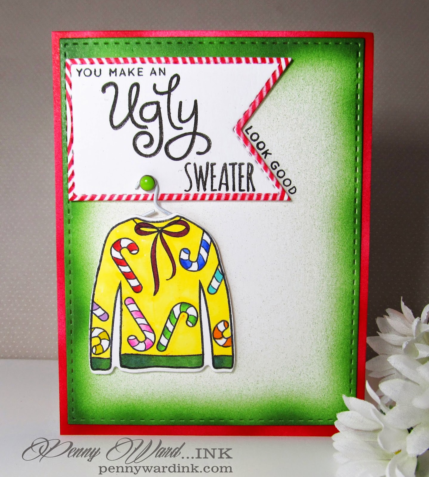 This is fun and not hideous or ugly - I think it is cute!! Makes me wish I had an ugly sweater to call my very own but I don't!! You did a great job on this card - love the little hanger in the sweater. You always do such a great job with details!!