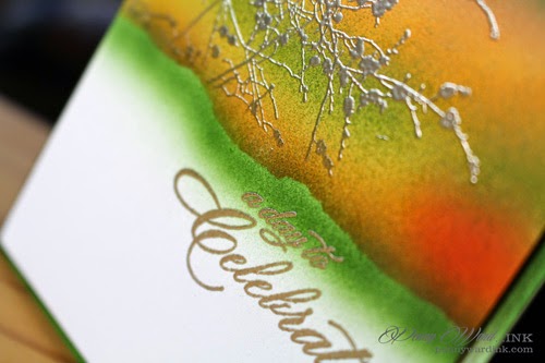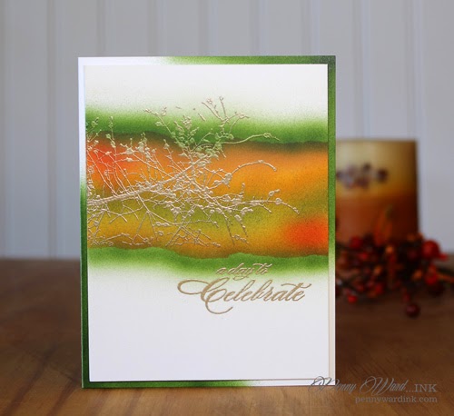 An Anniversary in Fall, just calls for those colors. I must say that I absolutely love the Liquid Platinum embossing powder (not quite gold, not quite silver but somewhere in between)