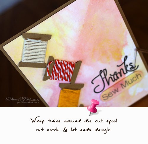 Two great ideas but the spools really got me. I love how you added the twine to them and put the rest of the card together.