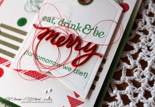 Reverse Confetti: Bring on the Merry, Tinsel 'N Trim, Celebrate Cake & So Stripey stamps set. Tag Me die