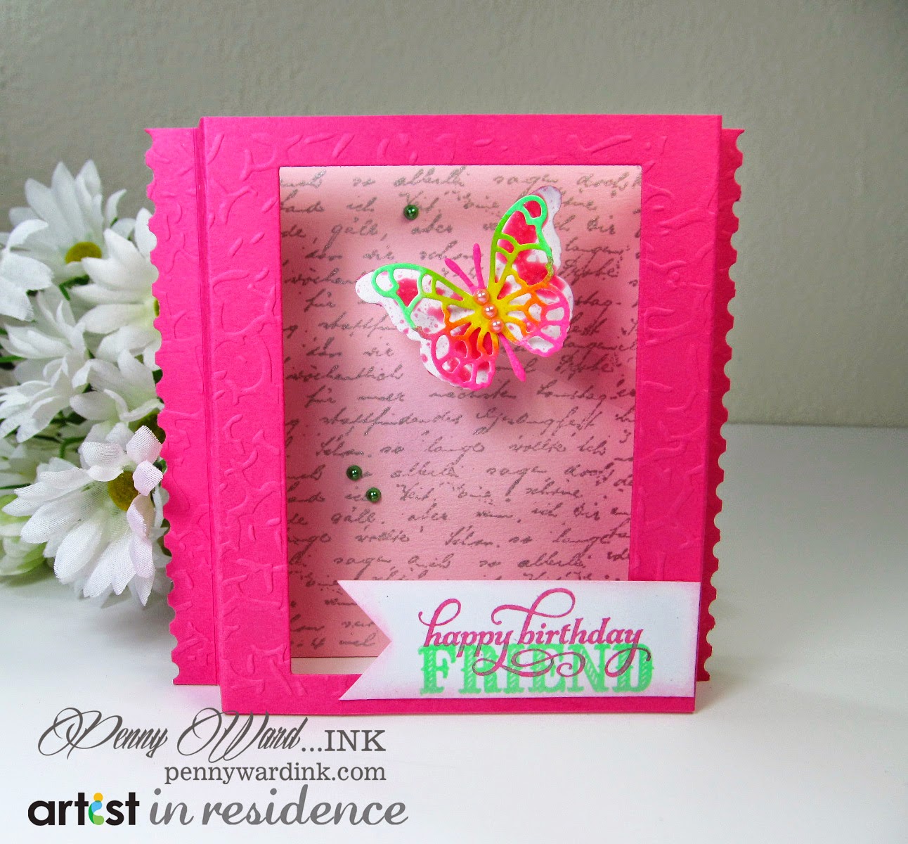 Inks: Radiant neon Electric Pink, Yellow & Green. Delicata Silvery Shimmer. irRESISTible in Angel Pink (Imagine Crafts/Tsukineko)