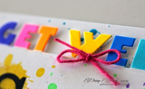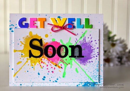 GET WELL was airbrushed with neon Copics, splats were stamped with neon inks and SOON was a stencil I made with my Silhouette Cameo, then airbrushed.