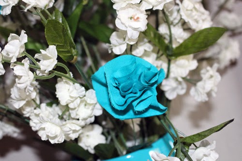 As you can tell, I am not a photographer, but I wanted to show the flowers I made from the left over fabric.