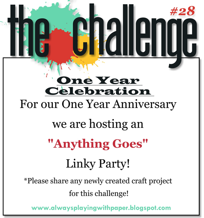Thanks for joining us at The Challenge on our Anniversary Linky Party Celebration! Sure hope that you join us again for a BRAND NEW exciting challenge tomorrow! -YAY!!!