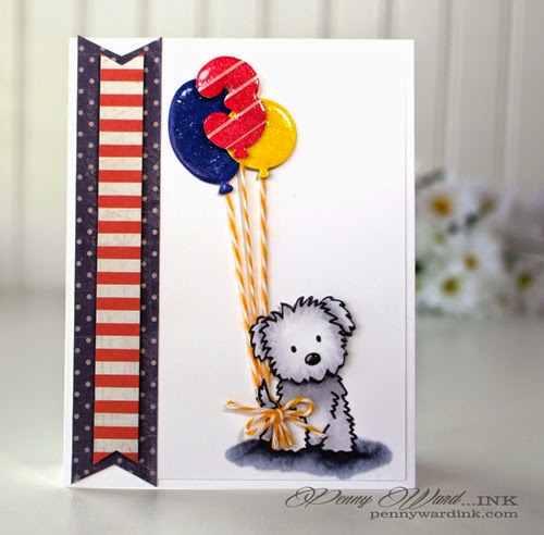 Beautiful card, love the stamp it is so cute and the balloons are gorgeous. It definitely looks like a Bichon.
