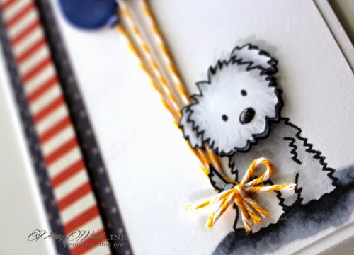 I stamped a second fur baby head so the twine would go behind him. The balloons have been coated with irRESISTible Pico Shimmer (just sayin' here....this is the greatest shimmer dimensional ever).