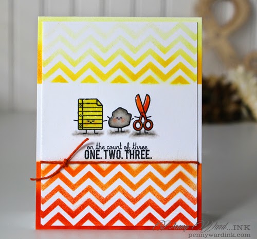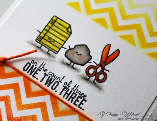 Using my eBrush, I made an Ombre zig zag background masking off my little Rock, Paper, Scissors cuties.