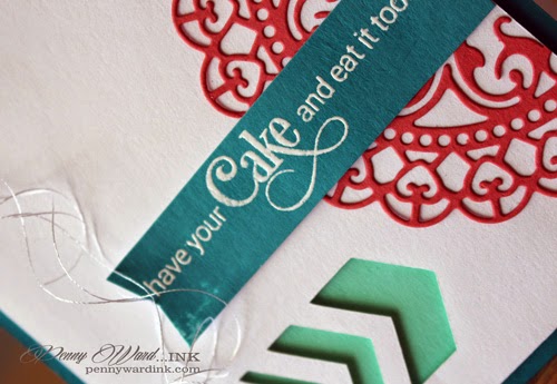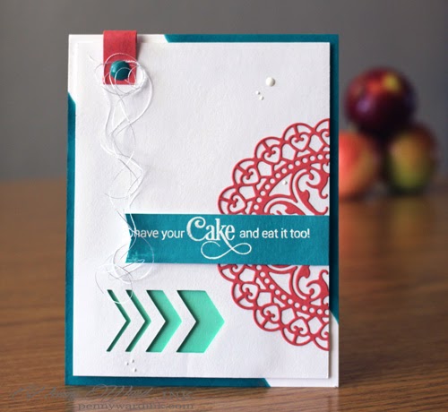 This super clean and beautifully graphic card should not only play in some challenges but should emerge as the winner - FABULOUS, I love the feeling of it and the way it convinced me to have my cake and not worry about the calories!!! I am in love with this card and speaking of birthdays - I am so glad you received my little gesture of birthday joy!! Hope the rest of your week is super fabulous!!!