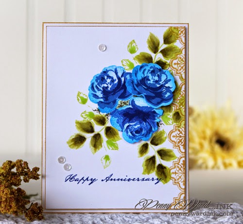 Oh, Penny, this is a stunning card, and I LOVE the colors you've used for your flowers and love that you fussy cut the rose to give it such dimension. Beautifully done with the lovely border too! Hugs!