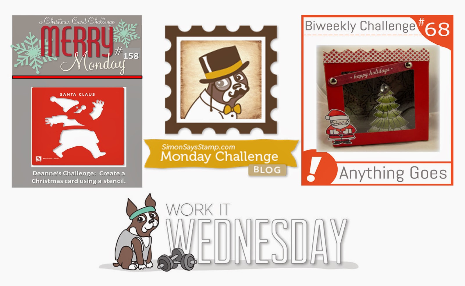 So adorable! Love the cute little sweater vest, and your stenciled background and loopy thread. Oh, and of course the fun sentiment! Thanks for joining us this week at Merry Monday, Penny!