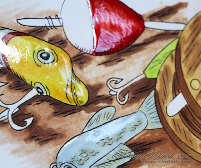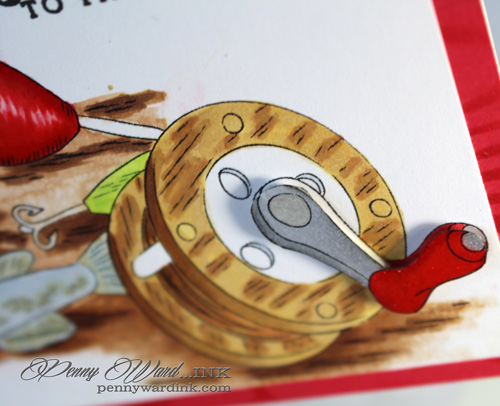 I colored the images with Copic markers, then colored and fussy cut a second handle (I am sure this has another name, but alas, I am not a fisher person) popping it up with foam adhesive.