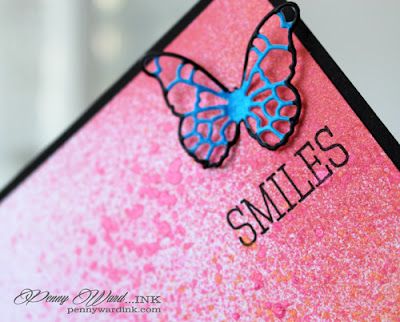 Butterfly was spritzed with Bahama Blue Fireworks. Edge of Butterfly was colored with a marker.